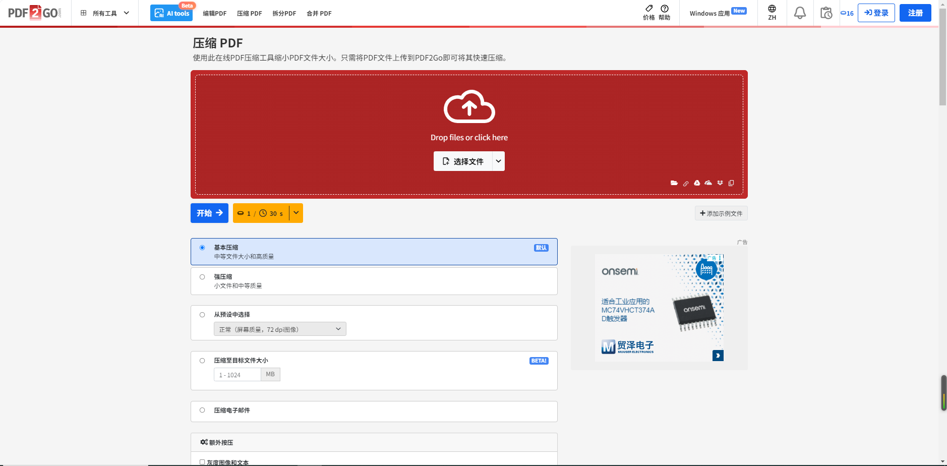 第一步:打开网站选择“PDF压缩”功能,上传需要处理的文件。