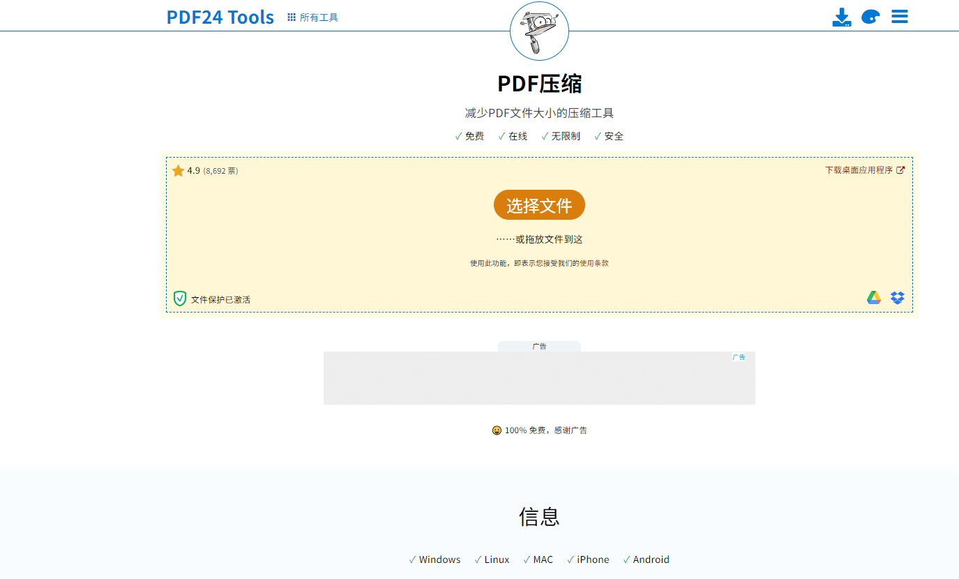 完全免费还没任何限制,自定义功能超丰富,能随便调压缩强度、图片质量和分辨率。支持本地处理和云盘上传两种模式,不想传云端的话能在自己设备上完成操作,保护隐私。除了压缩,还能合并、分割PDF,一个工具顶多个用,批量处理也没问题,对不想花钱又要多功能的人太友好了。