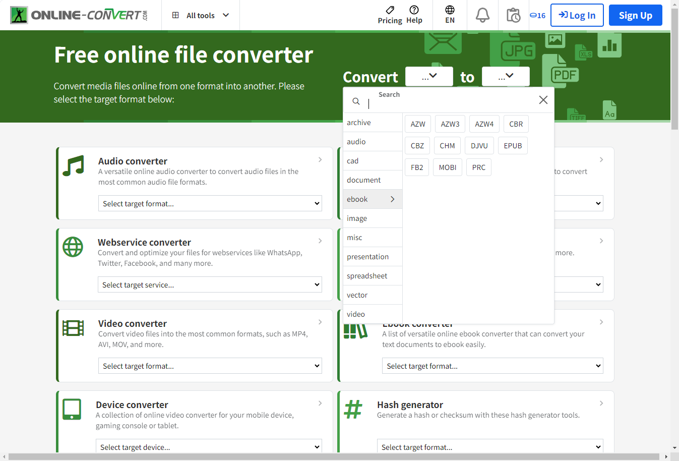 第一步:打开Online Convert官网,找到“CAD to PDF”功能,注册后上传需要转换的CAD文件。