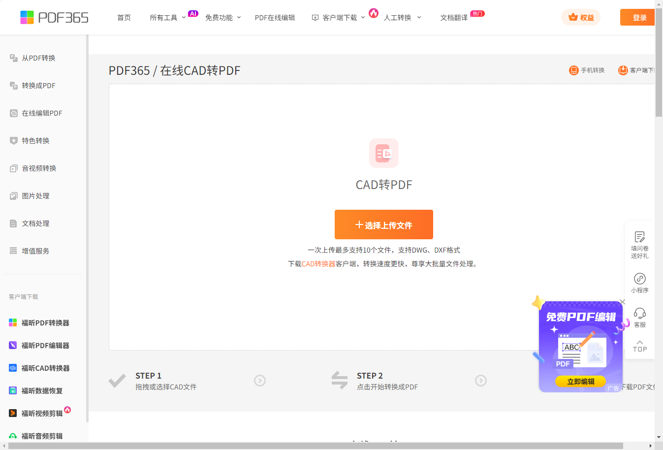 福昕PDF365是一款在线PDF转换器,支持PDF转换,PDF合并,拆分等操作,一站式解决文档转换编辑问题。