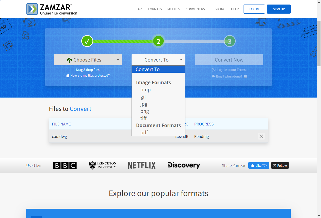 第一步:进入官网,点击“Add Files”上传需要转换的CAD文件。