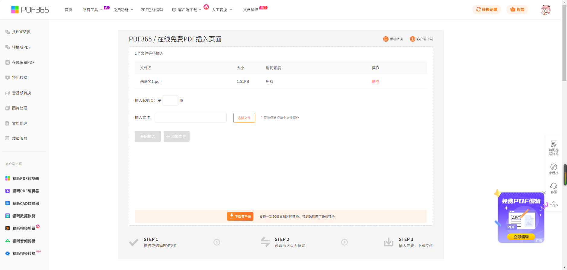 福昕PDF365是一款在线PDF转换器,支持PDF转换,PDF合并,拆分等操作,一站式解决文档转换编辑问题。