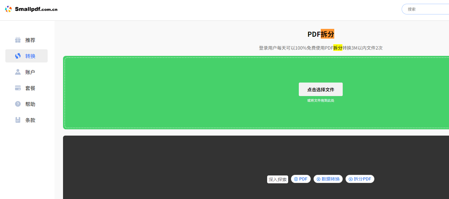 第一步:进入Smallpdf官网,选择“PDF提取图片”功能,通过拖拽或点击按钮上传PDF文件。
