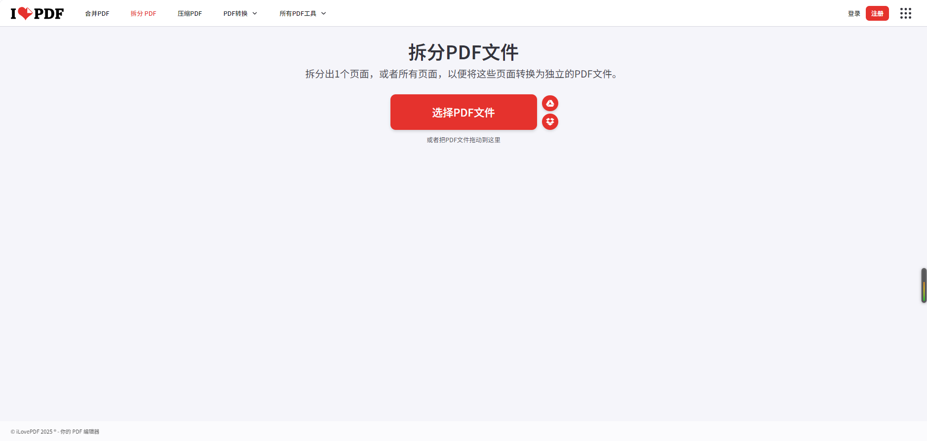 第二步:点击"选择文件"按钮,把要提取图片的PDF上传到系统,也能直接拖进去